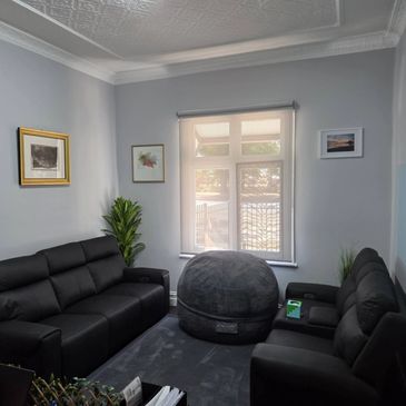 A relaxed comfortable spacious therapy room designed to help you feel right at home when you attend Peers Psychology.